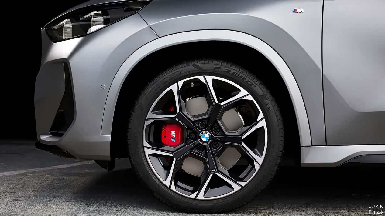 轮毂方面,宝马X1 M35i车型搭载M性能轮毂,双色五辐Y字形,搭配红色外壳带M标的四活塞卡钳,性能范就出来了。轮胎采用倍耐力P ZERO系列,型号为245/40 R20。此外,新车还将配备宝马的M Performance可调悬架。