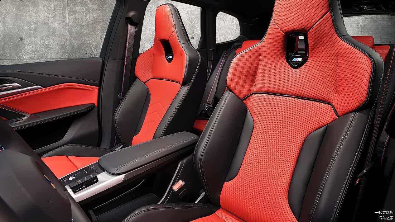 作为一款宝马M Performance车型,宝马X1 M35i前排作为采用极具运动化效果的靠背头枕一体式的运动座椅,而且是黑红搭配,从官图来看就已经包裹感十足。后排方面与现款在售宝马X1车型大差不差,只是在座椅配色方面也同样采用红黑搭配,更为统一。