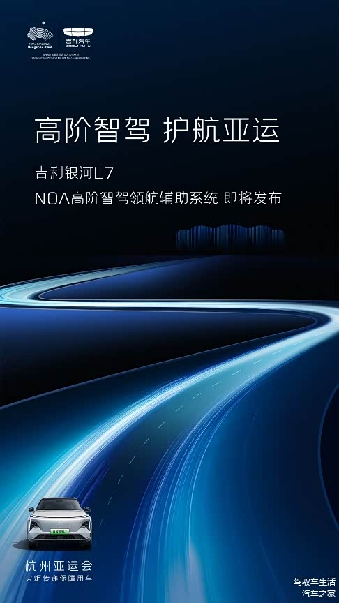 9月14日,吉利 银河L7(图片 | 参数 | 询价)官宣NOA高阶智驾领航辅助系统即将发布。同时,吉利银河L7作为亚运会火炬传递保障用车,已正式开启亚运火炬传递工作。