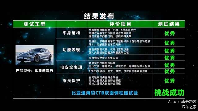 经过这次TOP Safety双面侧柱碰试验,这辆比亚迪海豹给了我们非常硬汉的表现,这样撞都没有问题,那么咱们日常使用更应该没问题了。通过这次测试,也验证了CTB一体化设计的先进性。再加上刀片电池本身的安全性,要不说,比亚迪海豹能卖的那么好呢,安全有保障,没有后顾之忧,难怪那么多人选择了它。那么你们觉得比亚迪海豹这款车怎么样呢?