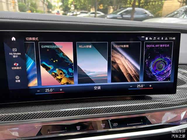 内饰方面相比外观来的保守不少,宝马新一代的内饰设计风格印象中最早在ix上看到,不论是颜色的搭配还是材质的运用都让人耳目一新,不过i7虽然延续了总体的设计风格,但
