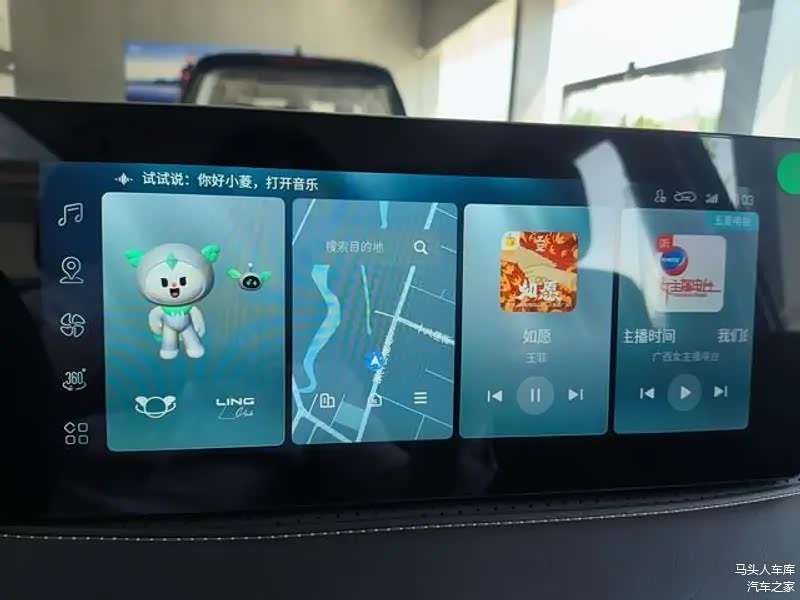 开机便能看到专属IP形象的一个电子宠物——小菱,可以当做QQ宠物陪伴行车,也可以进行互动。在语音交互时也可以直接与其对话,可以连续对话、单句多指令、声源定位识别,功能上相对丰富,反应比较及时。