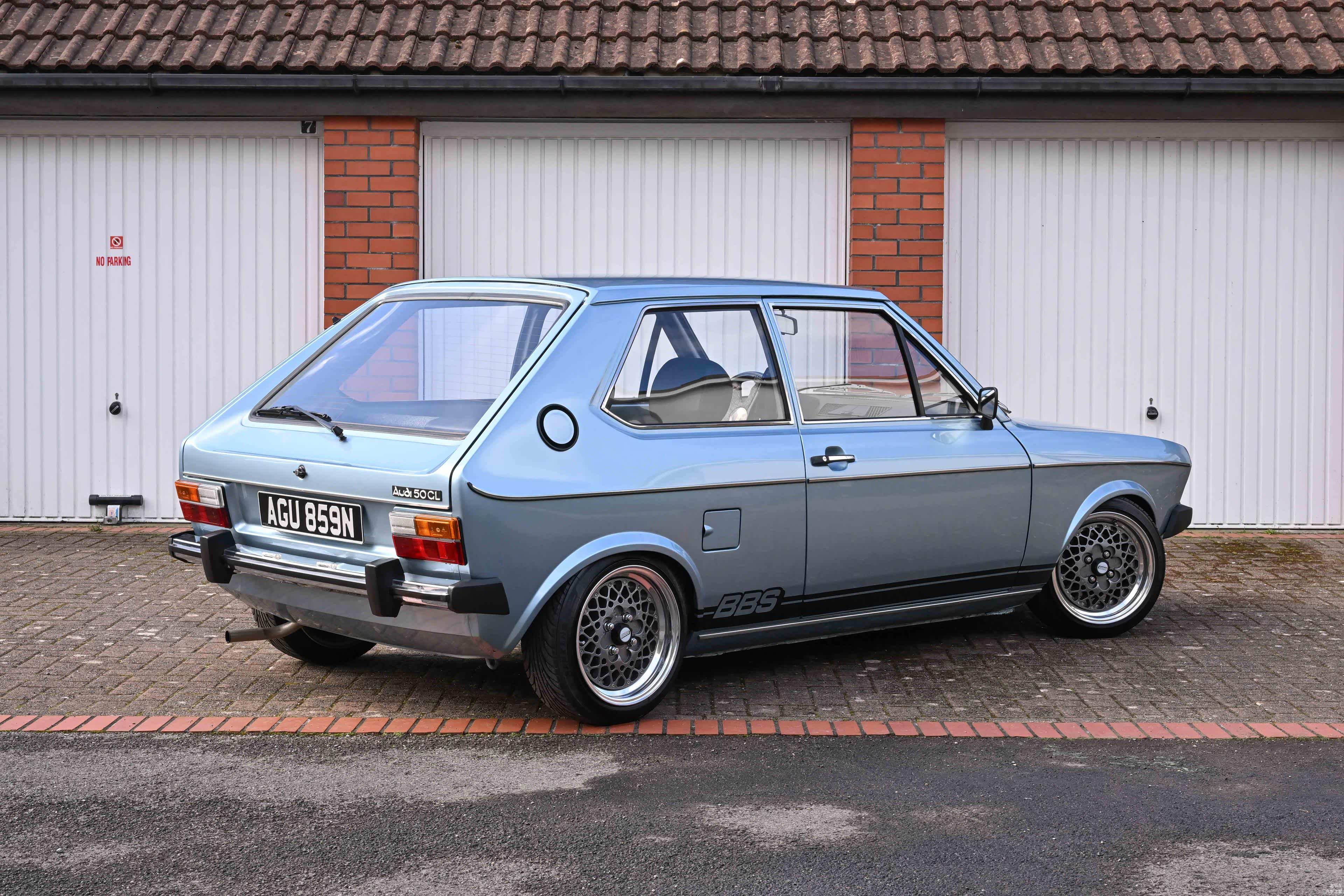 由奥迪位于德国Neckarsulm厂生产的奥迪50,在1974年诞生,实际上和大众狼堡生产的高尔夫系出同门,只是奥迪50为三门掀背,高尔夫则增加五门掀背和敞篷两种身份,同时奥迪50也在1975年衍生出大众Polo,严格来说是1970年代奥迪最入门的产品。车身尺寸和轴距分别为3490×1560×1340mm、2340mm的奥迪50,简单的车内空间可容纳四名乘员,但为了提升质感以赋予大面积真木饰板,后座椅背倾倒后则创造出高便利性空间。