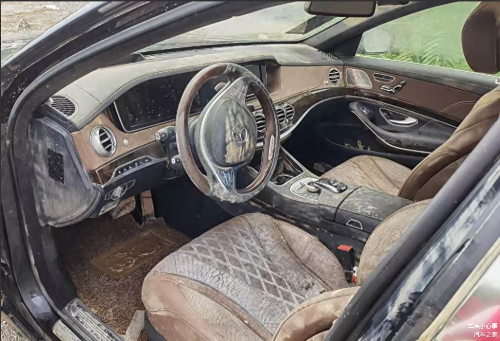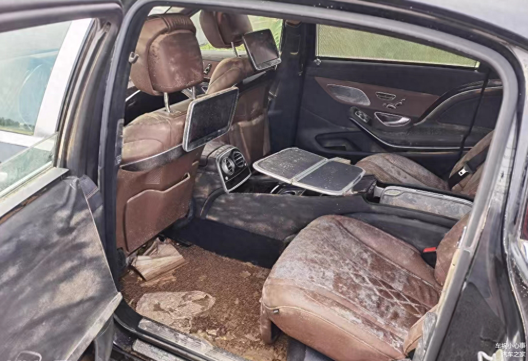 为什么这辆奔驰迈巴赫S500比较便宜?打开车门才明白,车辆在洪水中被淹,水淹至方向盘,车内电子配件基本需要重新更换,否则可靠性大打折扣,而且还增加了自燃风险。