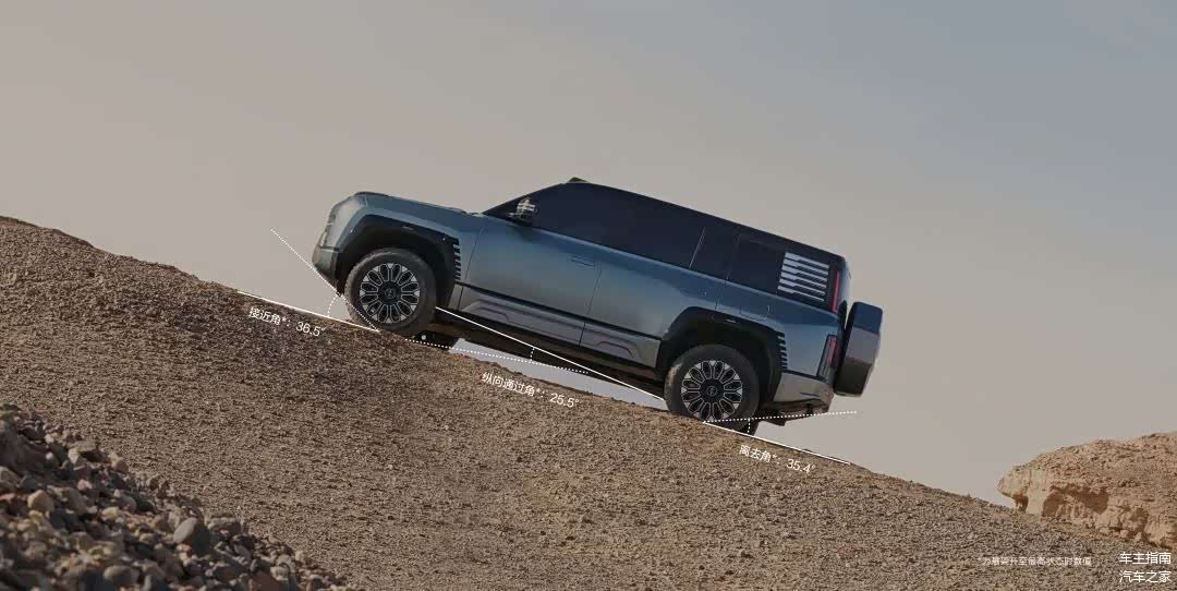 在尺寸上,仰望U8的车身长宽高分别为5319/2050/1930mm,轴距为3050mm,这个体型行驶在马路上是当之无愧的巨无霸。然而,哪怕尺寸巨大,仰望U8豪华版的通过性能依旧强悍——接近角36.5度,离去角35.4度,纵向通过角25.5度,涉水深度更是高达1000mm,而后续上市的搭载越野套件的越野版车型,在涉水喉的帮助之下,涉水深度更是可达1400mm!