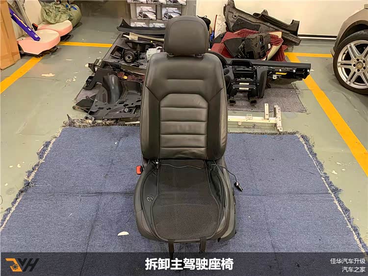 技术熟练的师傅已经稳稳当当的将大众辉腾主驾驶座椅拆卸下来了,放置在专用的施工区域进行施工。