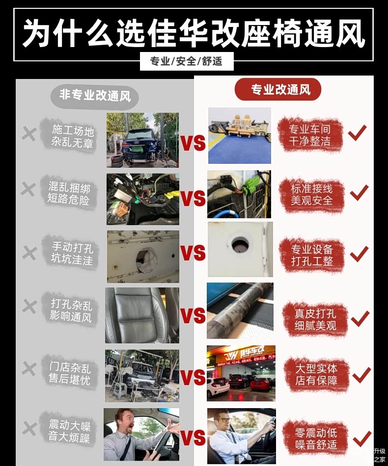 来说说为什么要加装导风层,因为座椅内部核心部件通过加压推动从原车空调导入的冷风快速均匀的流过座椅表面的气孔,带走座椅表面的热量,这就是为什么升级改装后的座椅如此舒适!