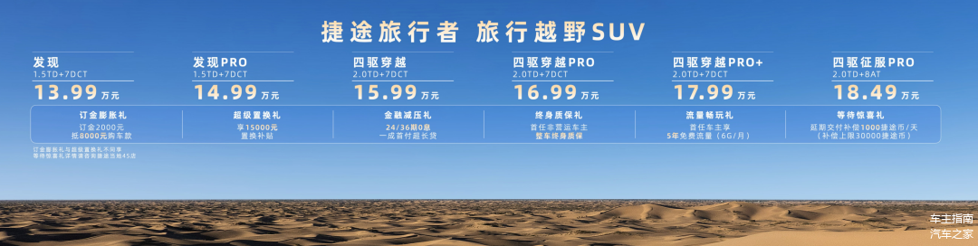因为推新速度慢,而被网友戏称的“墨迹者”,捷途旅行者,终于在9月26日上市。新车分为6个配置等级,官方指导价为13.99-18.49万元,与之前官方披露的14-18万预售价相比,仅仅少了一千元而已,所以说厂家这边很诚实,没耍套路,成功让许多媒体同行误判价格。