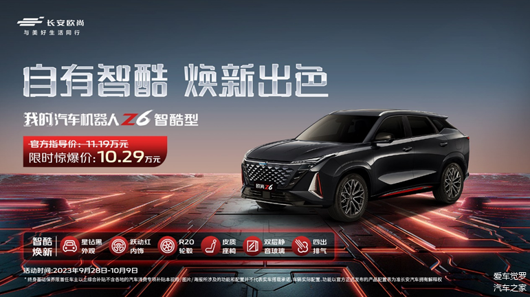 喜迎双节,焕新献礼。9月28日,我的汽车机器人—— 长安欧尚Z6(图片 | 参数 | 询价)焕新升级,基于10万+Z世代用户的新洞察,重磅推出长安欧尚Z6智酷型,指导价为11.19万元。新车采用了红黑撞色搭配,将经典潮流和运动氛围融为一体;蓝鲸新一代NE1.5T高压直喷发动机+蓝鲸7速湿式双离合变速器的黄金动力组合,搭配新增的20英寸大轮毂和四出排气筒,运动范儿再度升级;同时搭载了OnStyle5.1智慧快乐座舱,打破“科技茧房”,让更多用户享受到智能科技带来的美好出行体验。