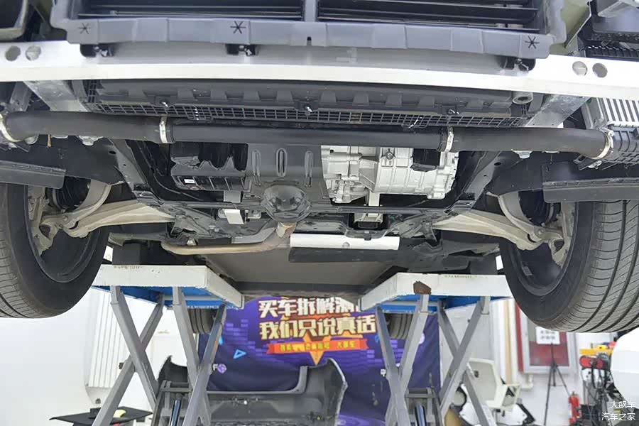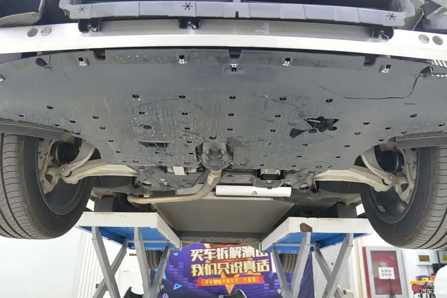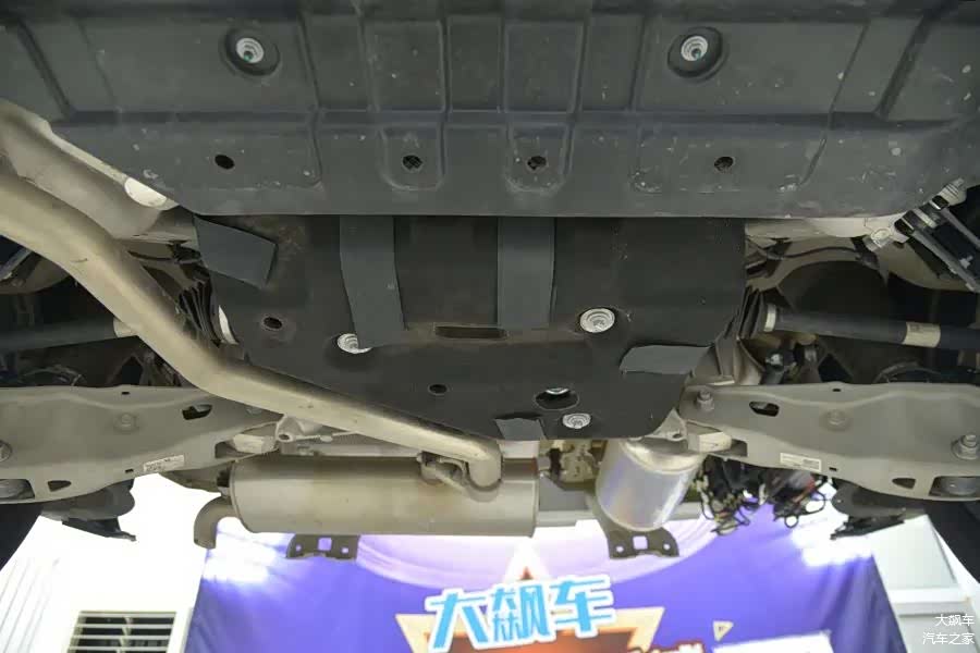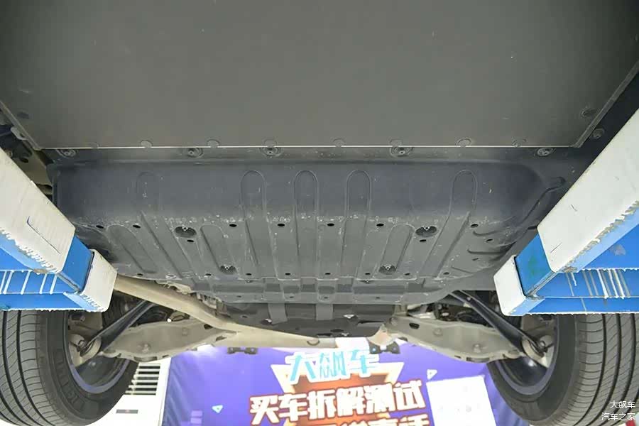这辆车的底盘相当平整,下方覆盖有比较完整的护板。