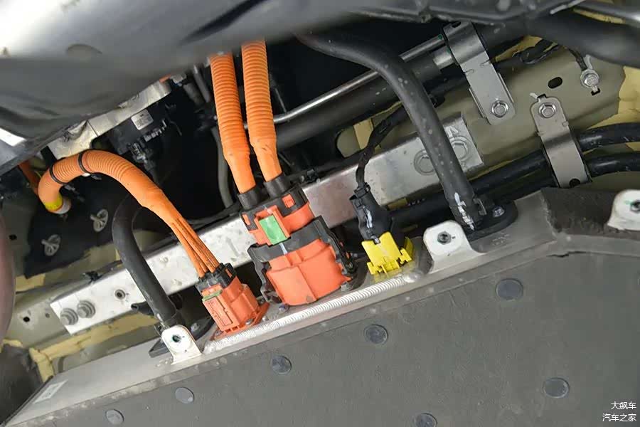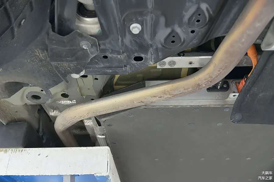为保护电池及端子,前侧设计了一道铝合金防护梁。