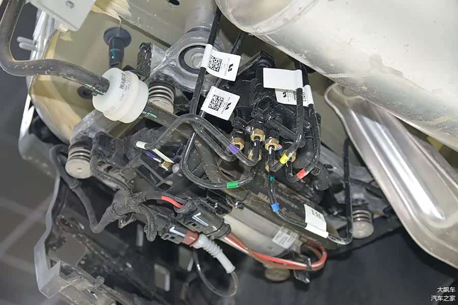 和L9一样,后悬也是五连杆独立悬架,最主要的银色下摆臂并不是铝合金材质,而是冲压钢板使用了美加力涂层,比普通喷漆有更好的防锈效果。