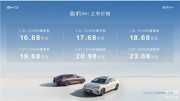 新车共6款车型,售价为16.68万-23.68万元。上市之际,同时推出2年0息、5000元置换补贴;赠送6年或6次基础保养;首任车主非营运车辆三电终身保修等多重上市礼遇。