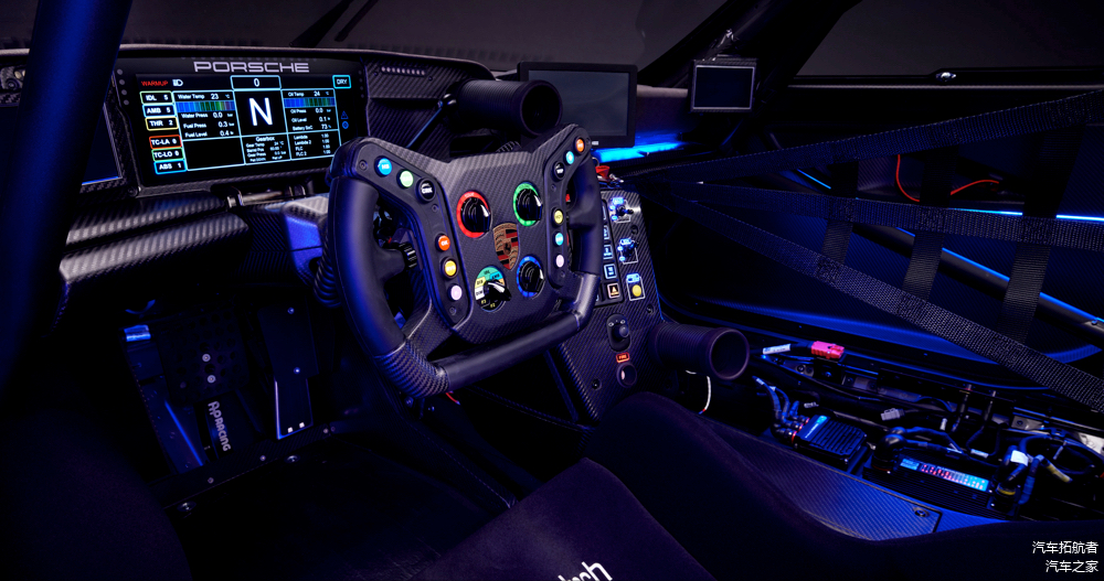 为了达到极致的轻量化,911 GT3 R rennsport 除了全车采用碳纤维材质打造之外,原厂还去除了空调系统,以及采用轻量化安全油箱,使其车重只有 1,240kg。