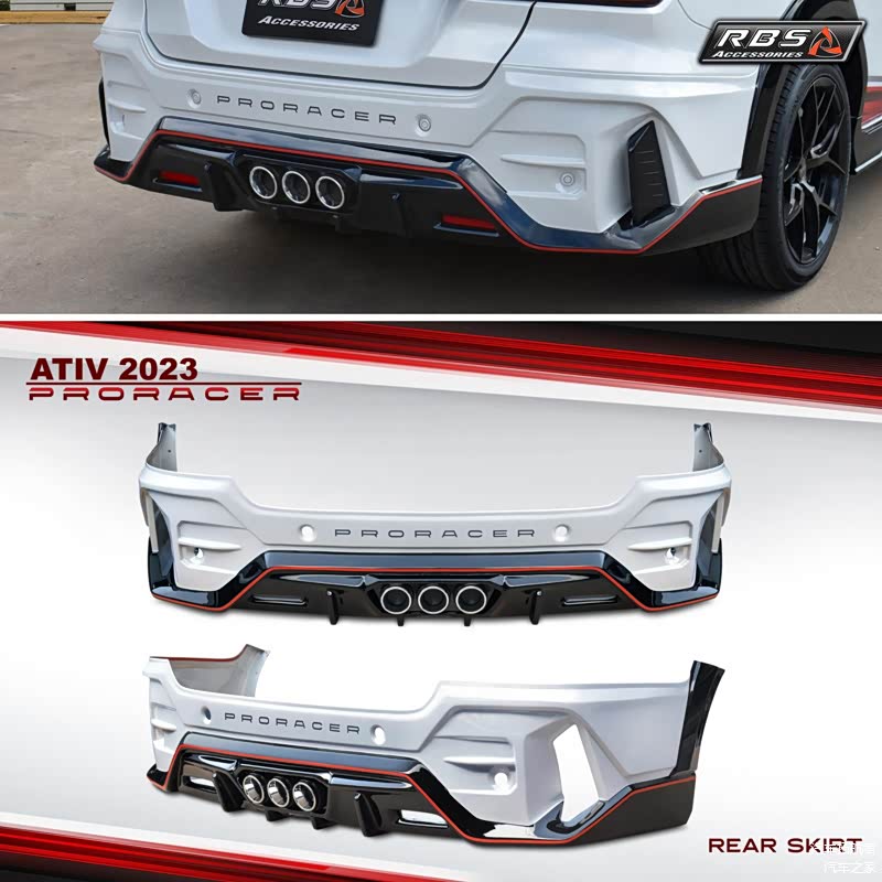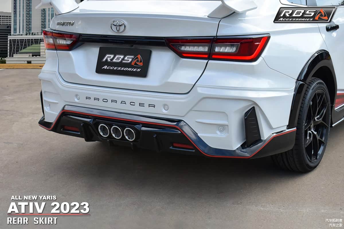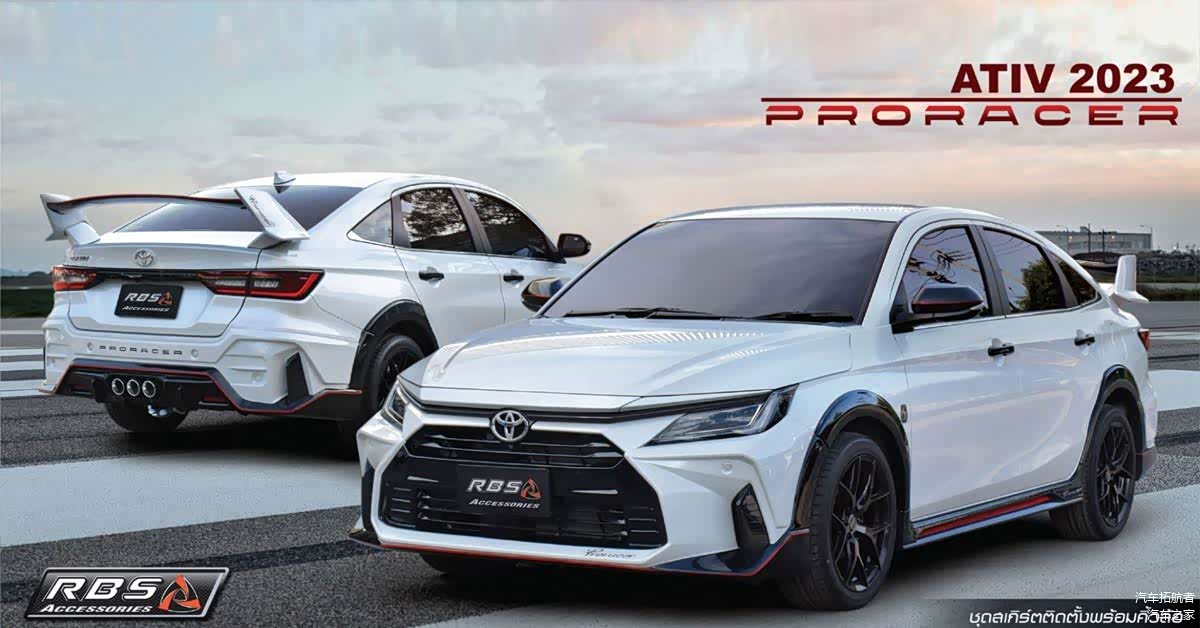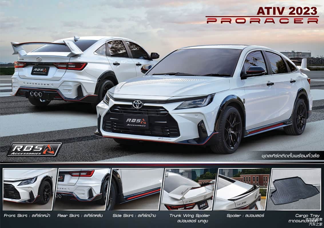 这一套名为 Proracer 的改装套件是由泰国改装厂商 RBS Accessories 所推出的,全套一共有 5 个部件,包括了前唇、一套侧裙、带假的中置三出排气尾管的扰流器、一套轮眉以及车尾超大的尾翼,而且从改装厂商所释出的实际上车图的话,还有一套赛车拉花,你可以看到它整体的设计风格是超级激进的,在套件上身后,给到你超大的视觉冲击力。