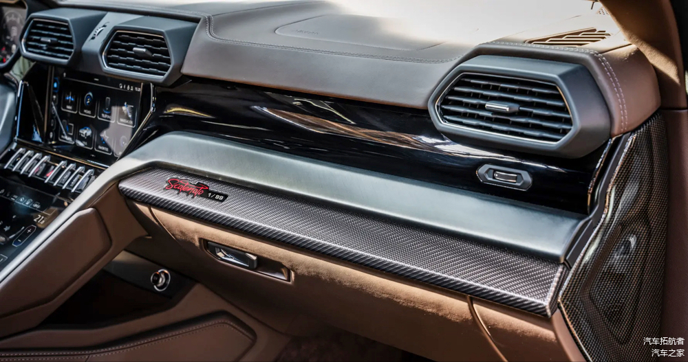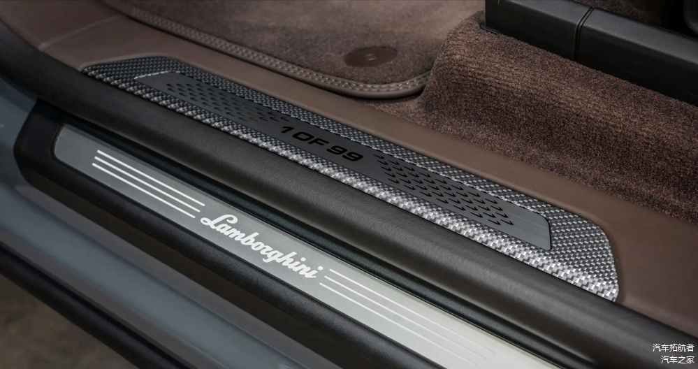 内饰也布满大量碳纤维饰板,包括仪表外框、座椅外罩等等,并提供多种皮革配色让客户选择,其中仪表台和门槛上均有 “1/99” 限量铭牌。