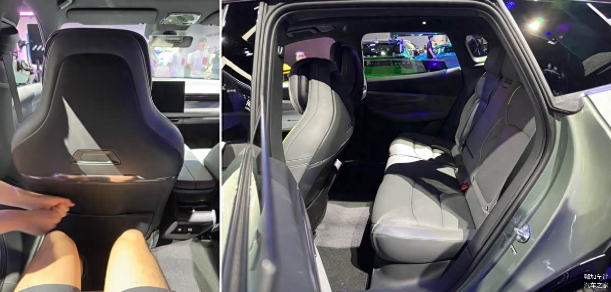 前排座椅给95分,这张座椅无论是造型设计还是乘坐感受都非常出色,整张座椅材质填充饱满但不生硬,能够提供足够强的包裹感、下陷感,以及恰到好处的支撑。坐垫长度表现不错,靠背和头枕对驾驶员上半身的贴合程度也是极佳,且对于我这种肩膀比较宽的驾驶员非常友好,唯一能称得上不足的地方就在于,坐垫倾角调节范围还可以再大一些,目前即便将倾角调整到最高,膝点也还是有点低了,对腿长或者喜欢较低坐姿的驾驶员不够友好,在我最为舒适的低矮坐姿下大腿前部还是略微悬空,将座椅稍稍调高一点就可解决。