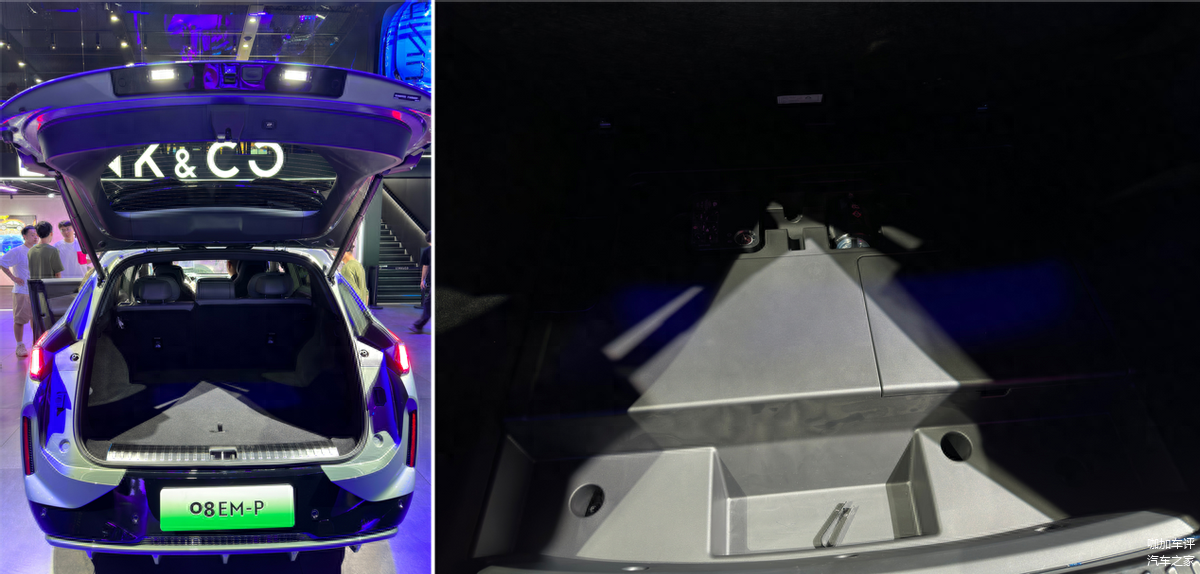 领克08后备箱的表现还算不错,作为一台能够纯电行驶超过200KM的混动SUV,我对其装载能力的预期本就不高,在看到实车后,我甚至觉得这台车后备箱的实际表现甚至略微超出了我的预期,进深和横向宽度表现都合格,地板甚至还比我预计的要低一些,不过地板下方的储物格却比我想象的要小不少,并且令我有些意外的是,这个小储物格内并没有铺设植绒或类似的材质,放置物品在行驶过程中会产生恼人的异响。