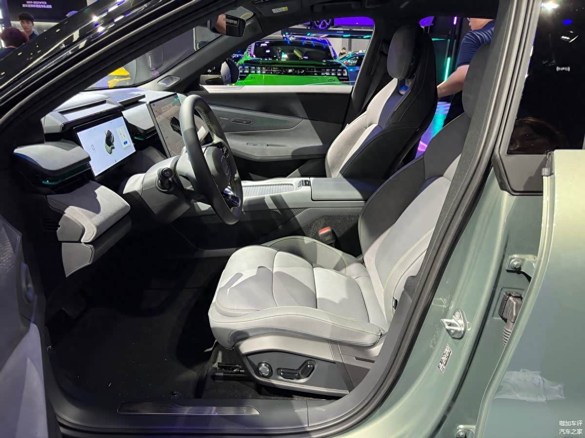 【静态体验】进入前排落座驾驶席,能明显感受到领克08车内的用料、做工以及最后呈现的质感都极为出色,保持了吉利集团内饰质感越级的优良传统,大量翻毛皮的应用使得这台车给人的感受相当高级,普通皮质和其他软、硬质材料的观感和触感也都非常不错。