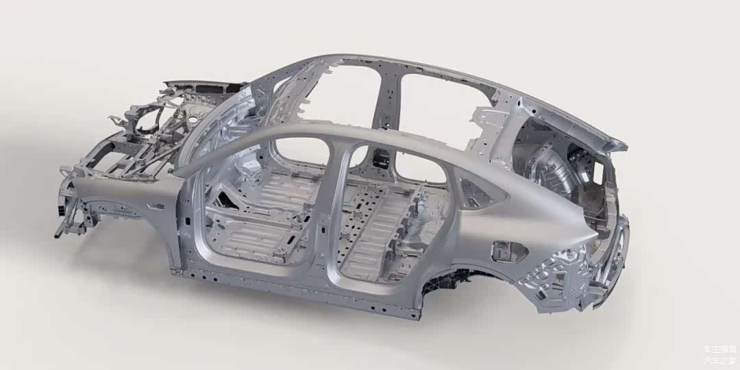 在车架和底盘硬件方面,EC6也颇具看点。通常来说,像EC6这种自带无纵梁天幕的掀背车,想要把车架做得硬一些则需要花费更多心机。对此,EC6的解决方案便是钢铝混合车身,在一些关键的部分采用高强度钢,以保证安全性,另外绝大部分用的是铝合金,其中后地板和C、D柱部分均采用一体压铸技术,保证了较强的结构刚度。