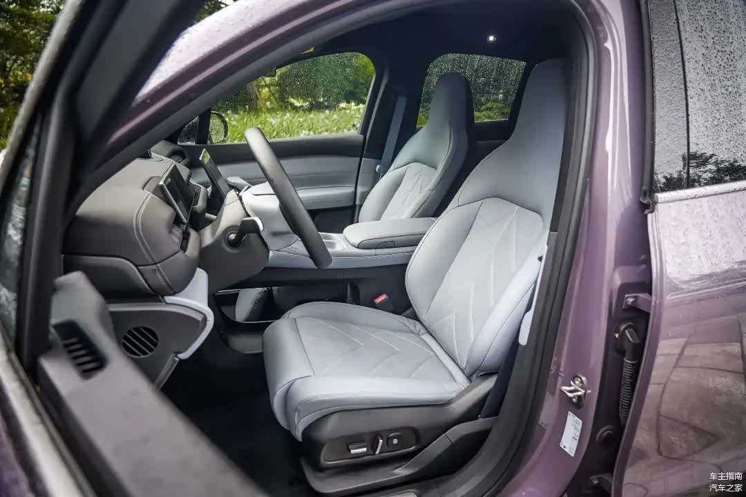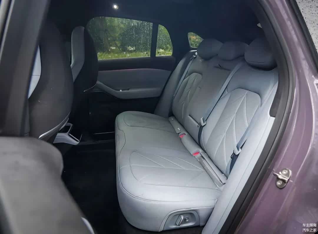 后排座椅舒适性非常好,坐垫较长而且高度足够,光是这点就已经秒杀了大部分新能源SUV,此外它的座椅填充物软硬分布也没有问题,靠背角度支持电动调节,还可以选装座椅通风/加热/按摩功能。
