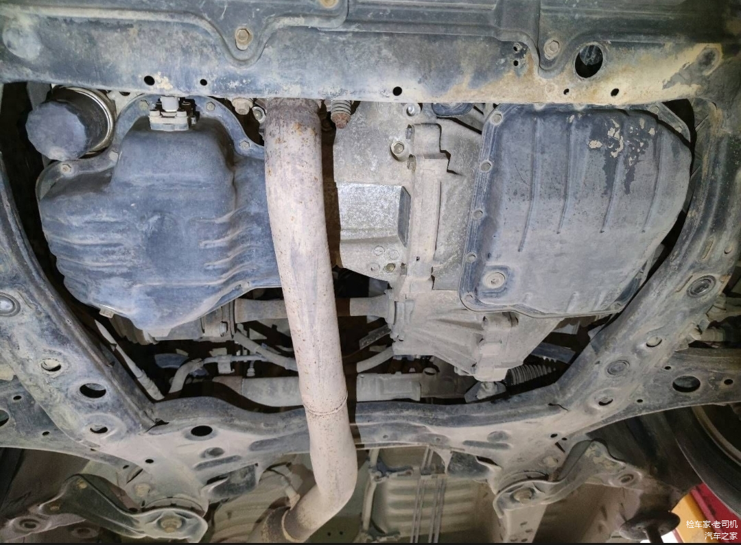 最后就是开到修理厂检测底盘,发动机变速箱下面整体看起来很干净,没有明显渗漏的痕迹,刮蹭托底的痕迹也几乎没有!
