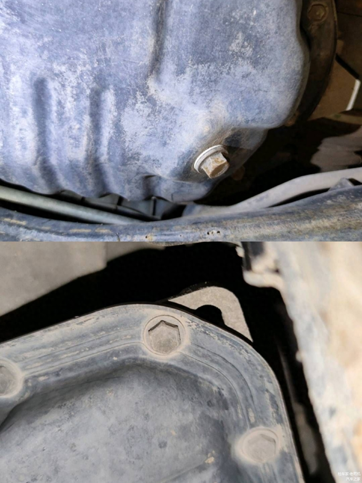 发动机油底壳没动,但变速箱油底壳拆过,结合当前的公里数判断,是更换变速箱油拆的,这属于正常维护保养!