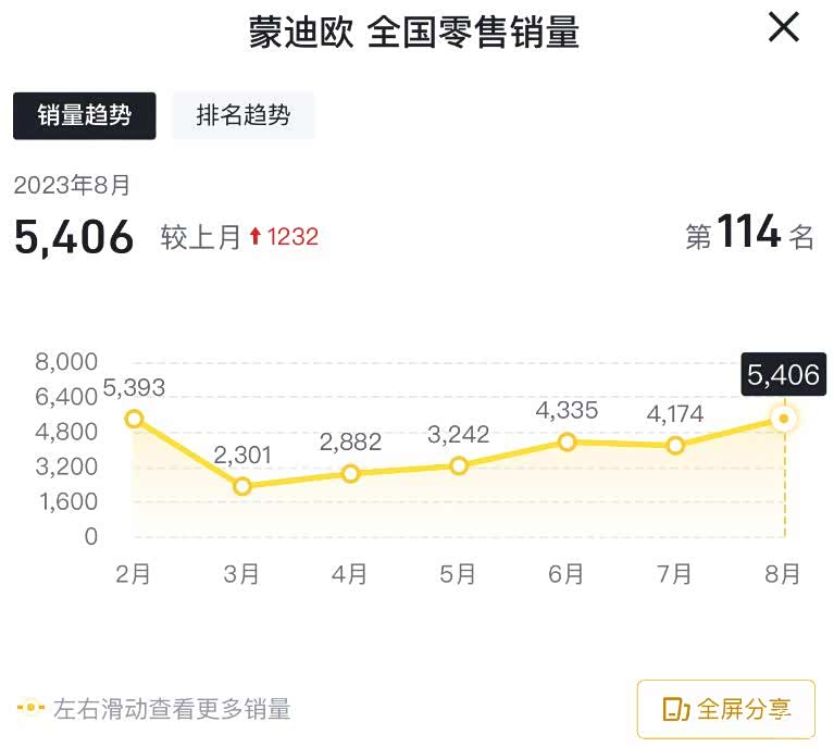 所以,我认为,这个数据并不会影响蒙迪欧的整体销量走势。进入2023年9月份,蒙迪欧应该能够创造更好的销量成绩。