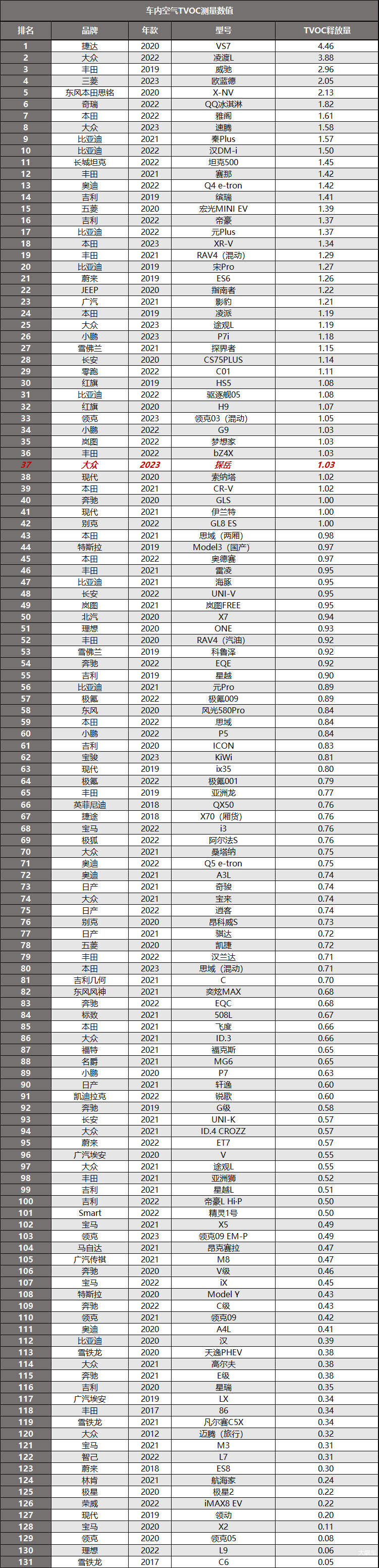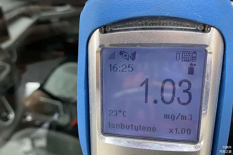 经过在23±1℃恒温环境中16小时的封闭,这辆车的车内空气TVOC释放量测量数值为1.03毫克每立方米。