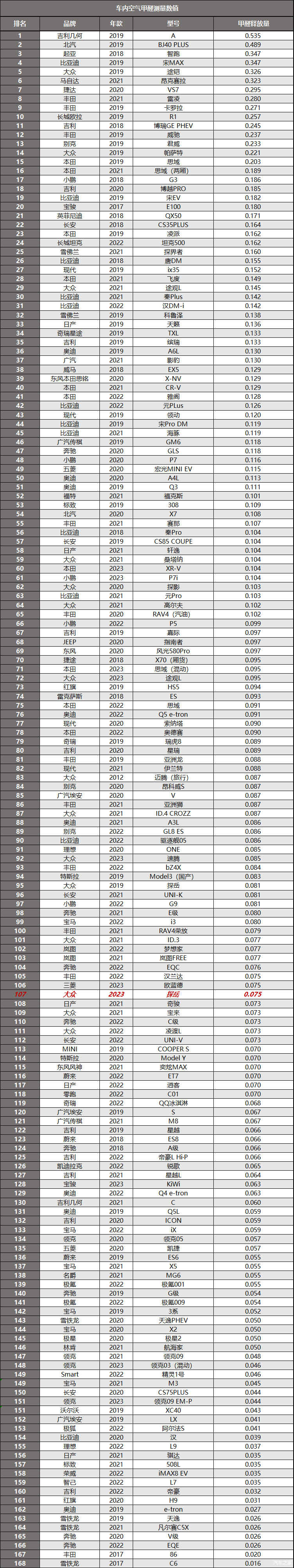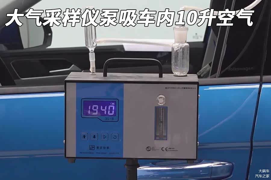 测试方法:将测试车辆在自然环境中,打开车门车窗进行完全通风;随后,将一根硅胶软管固定在司机头枕附近,模拟人呼吸位置;关闭车门车窗,将车辆停在恒温23±1℃的环境中密封静置16小时;使用采样仪从软管泵吸出10升车内空气,与酚试剂反应;将显色剂滴入酚试剂中,静置15分钟;使用醛正甲醛检测仪将显色后的样本进行检测,得出结果。