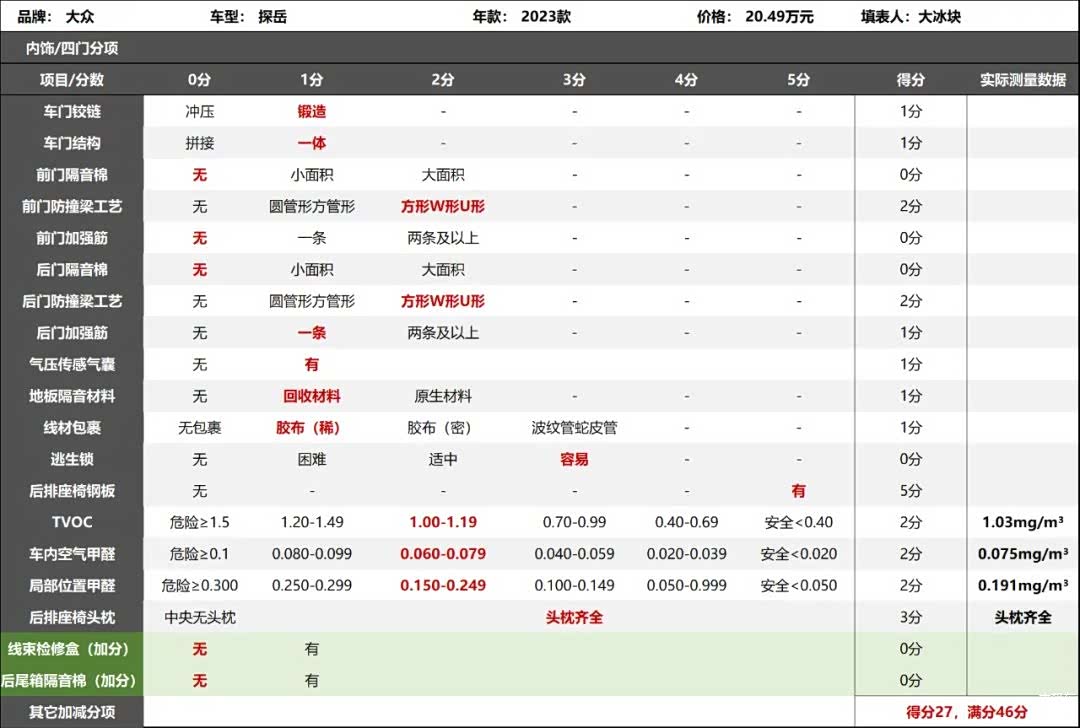 那么这辆车值不值得买呢?如果你打心眼里觉得大众比较高级,开回去能涨面子,那么16万左右的价格,倒真值得考虑,毕竟个头不小,还是个大众SUV,这价格真挺诱人,买辆自主品牌也得花十几万呢。当然自主品牌的配置要高得多,具体怎么选就看你如何取舍了。(本文及视频中的测量数据结论观点仅对此辆车负责,测量数据对公示的实验方法负责。)