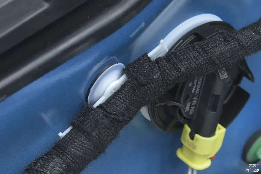 现在大众车门线束的固定方式,已经跟日系车差不多了,使用电工胶布包裹固定,或者别在门板卡扣上。