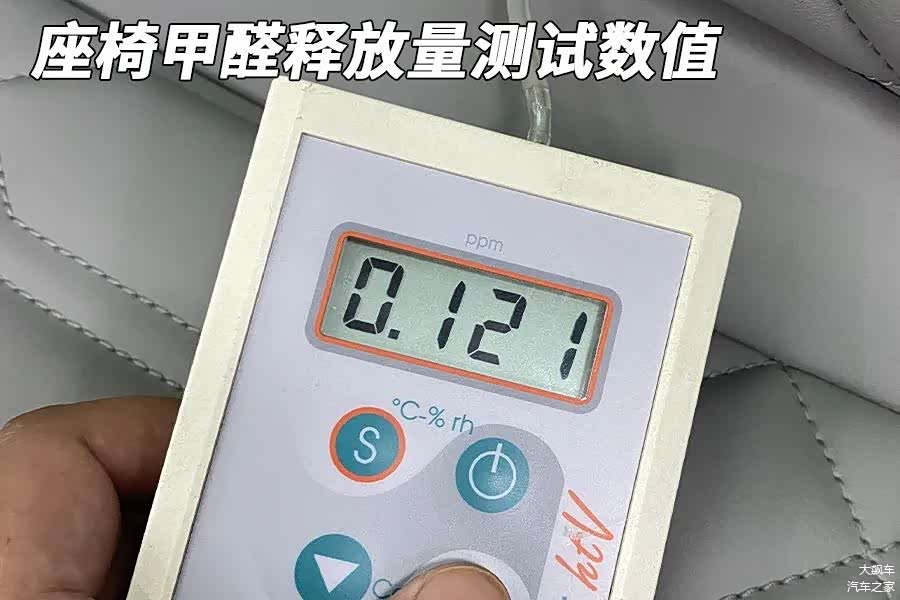座椅的甲醛释放量测量数值为0.121毫克每立方米,顶棚中的甲醛释放量测量数值为0.147毫克每立方米。