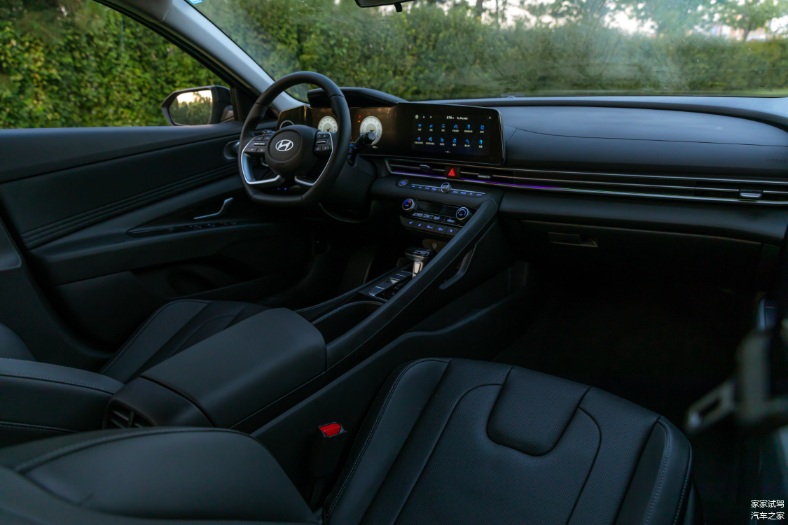 反观全新伊兰特,内饰整体氛围营造一种前卫科技感。偏向主驾位的不对称中控台,预示着它是一辆注重驾驶的车型。行业独有的10.25英寸智慧双联屏,无论是全新的GUI界面还是分辨率、反应速度,都是同级别领先的。