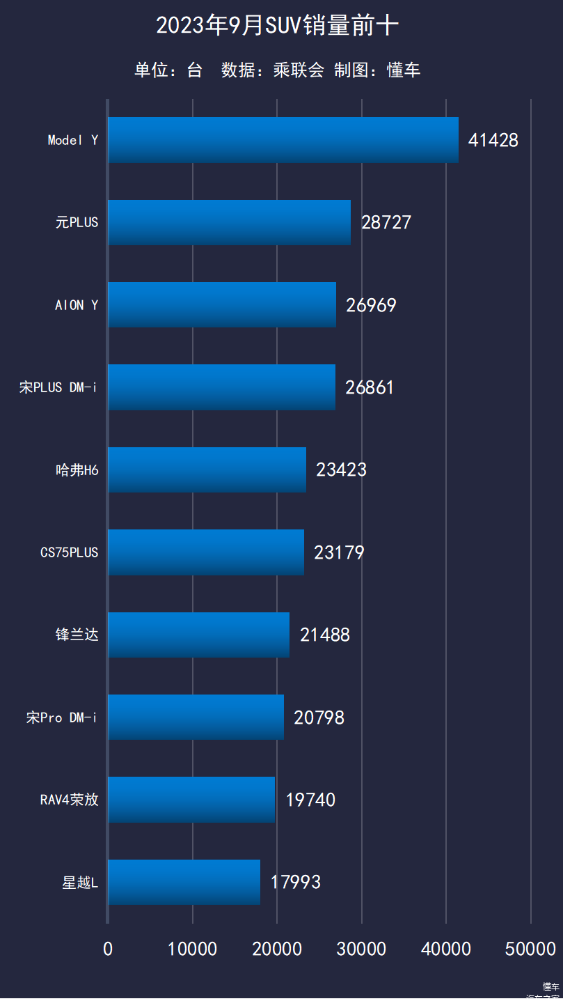 SUV方面,虽然特斯拉Model Y 8月卖了5.11万台,但并未透支9月的市场需求,9月仍然卖了4.14万台,轻松完成了“五连冠”,是今年中国市场最受欢迎的SUV车型。