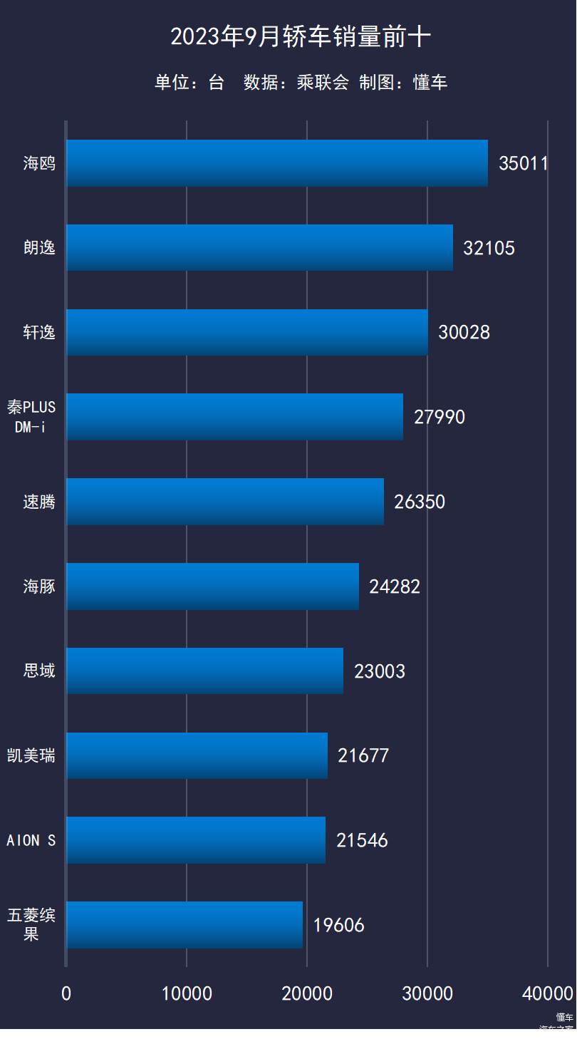 轿车销量方面,比亚迪的又一爆款海鸥轻松完成“两连冠”。轿车销量前四的排名与上月保持一致,大众朗逸完成了“四连亚”。