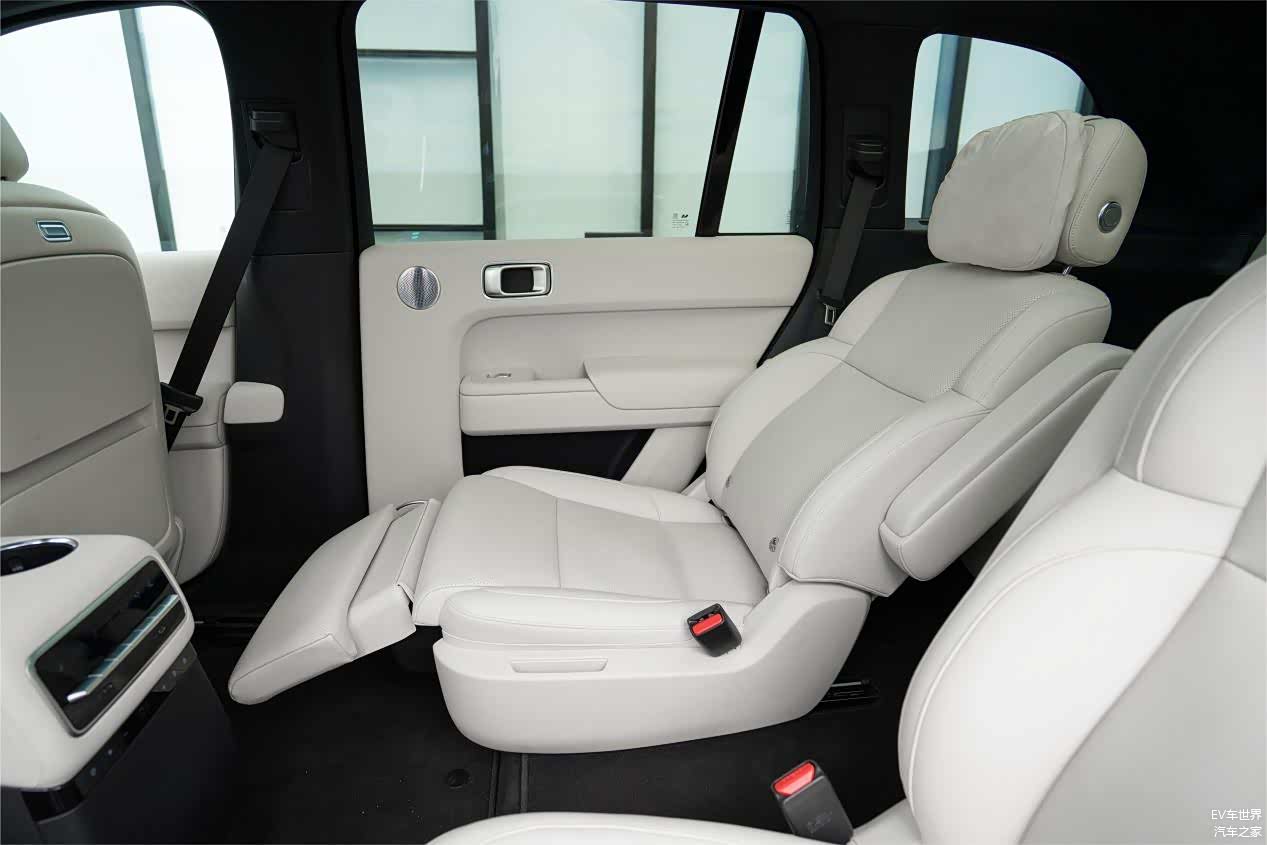 而如果没有坐满6个人,第二排还可以选择很惬意的半躺姿态,配合加热、通风、十点按摩功能,配合调校偏舒适取向的空气弹簧+CDC电磁减震,不管是高速行驶还是堵在路上,都能美美的睡上一觉,很好的缓解长途奔波的疲劳。