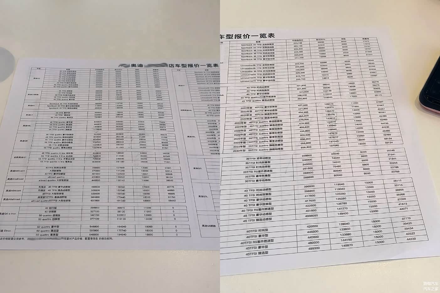 再有,今年的拳头产品,用上了新技术平台的奥迪Q4e-tron,在上市半年后,指导价从29.99-37.71万元下调至28.99-36.71万元。目前,在4S店终端里,其优惠幅度超过7万元。