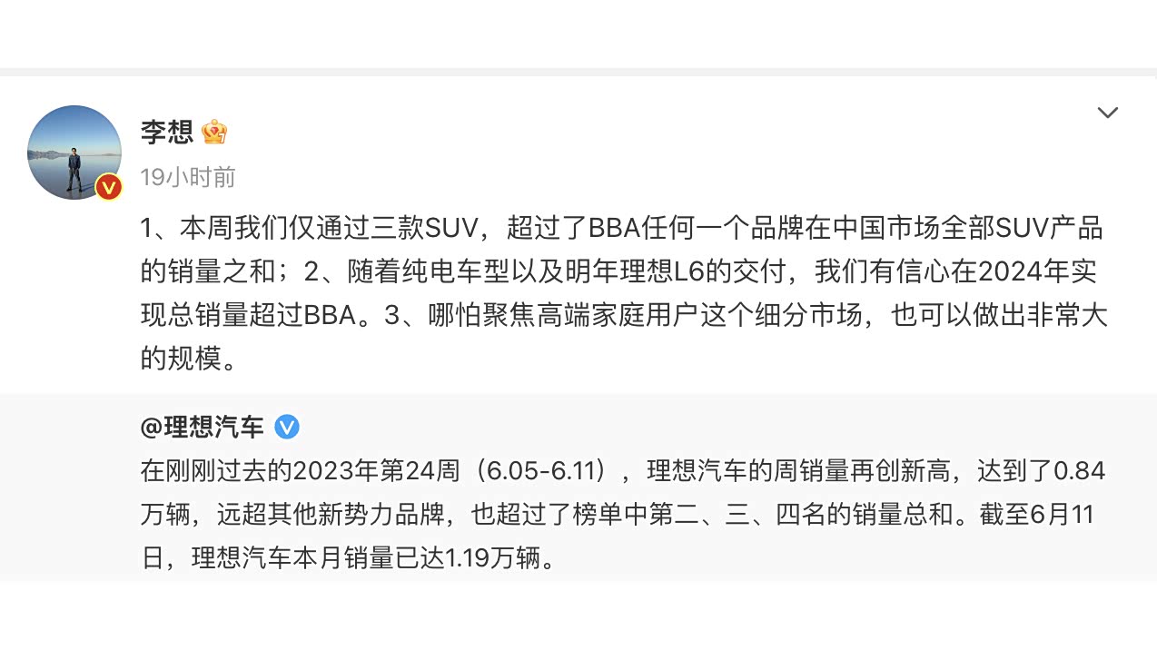 李斌、李想,从2019年开始就已经喊出了,目标就是抢夺BBA以及其他燃油豪华车的市场份额,蔚来在2022年喊出超过雷克萨斯,理想则是已经将目标定为,2024年超过所有传统豪华品牌,2025年则是超过奔驰宝马之和,来到160万辆。