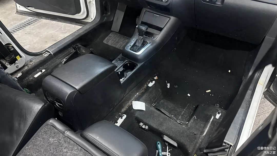 地毯拆除,下面更脏,严重怀疑这车是跑煤矿山的!