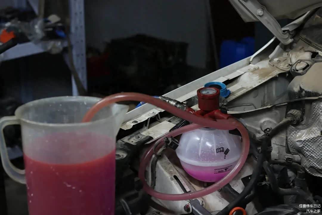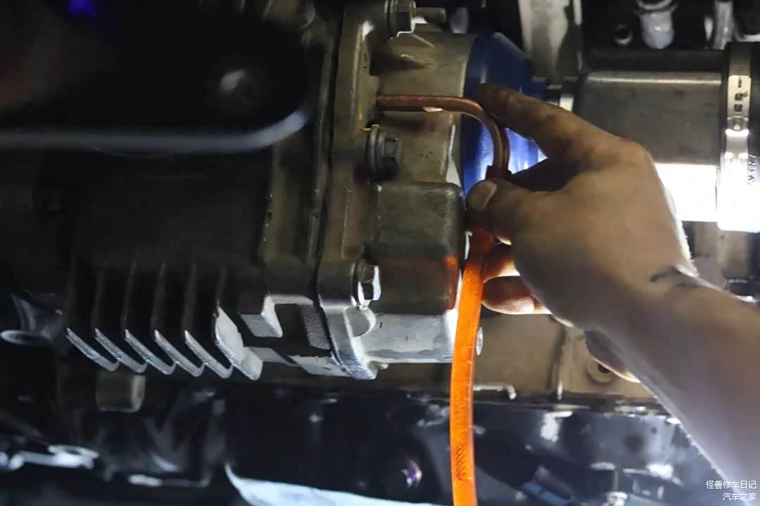 发动机已经组装上车了,散热系统也回装了,正在添加冷媒。