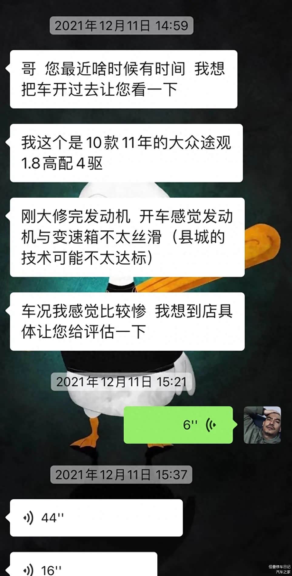 故事得从2021年说起,这是车主第一次与我沟通,说手上有一辆途观在本地县城大修了发动机,结果问题依旧存在,想送来天津让我收拾一下。