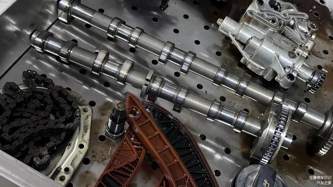 不过有一根凸轮轴有点磨损,这个正时系统都没换过。