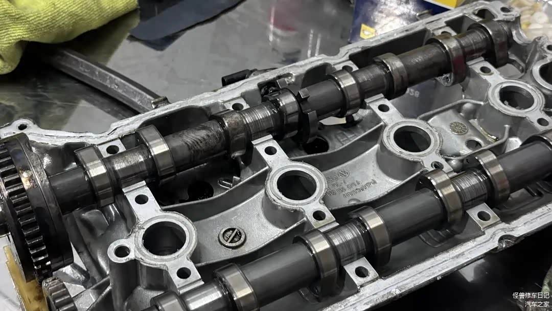 继续检查,第二个问题来了,进气凸轮轴磨损严重。