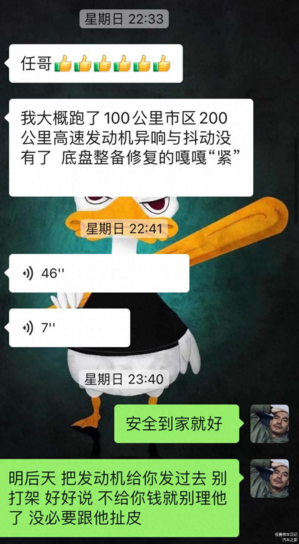 车主本来想把坏的发动机搞回去,找本地修理厂要个说法的,但是那边修理厂态度挺强硬的,还反过来找车主要钱,车主想了想也只能认栽了,不想为了几千块的破事气到自己,车主这样的心态挺好,吃一堑长一智得了,没必要纠缠,浪费自己的宝贵时间和精力...