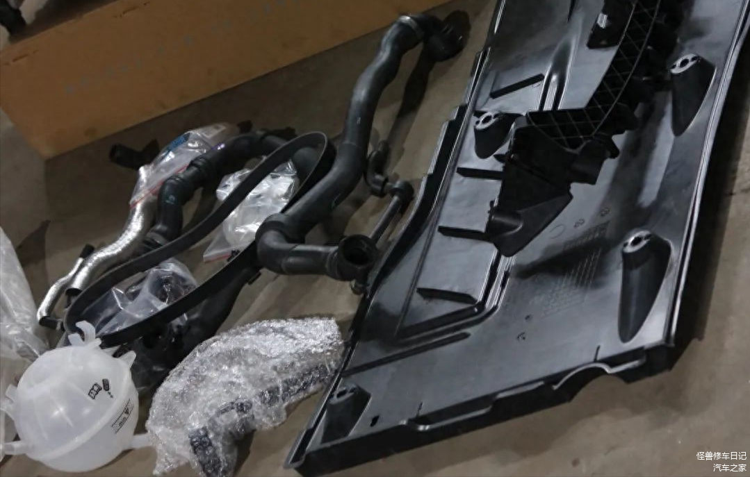 机舱还有一些零部件更新,冷却液壶、水管、下护板等等。