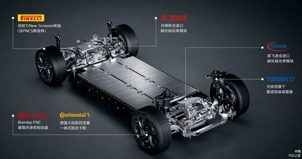 高配采用了800V双碳化硅平台,最大工作电压甚至达到了875V,整个电驱、电池和电控系统都是真·800V。