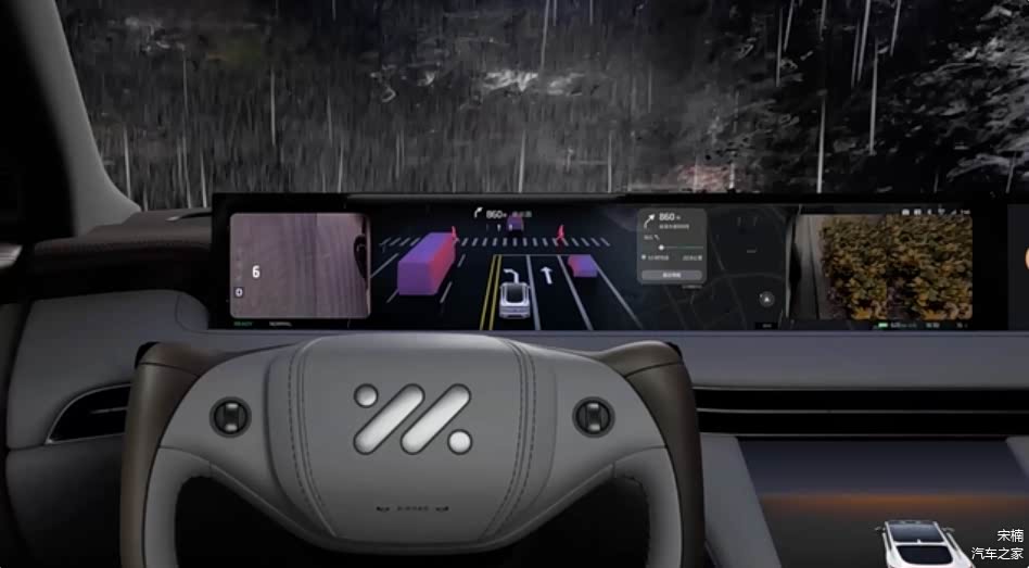 除了常规的8155智舱,智己LS6还通过设计、算法等以工程师技术手段,尽可能的消除驾驶中的盲区。例如,其在行业内独创一屏余光感知,将所有交通敏感信息,通过AI算法,在驾驶员第一视角高显标注,一屏展现。