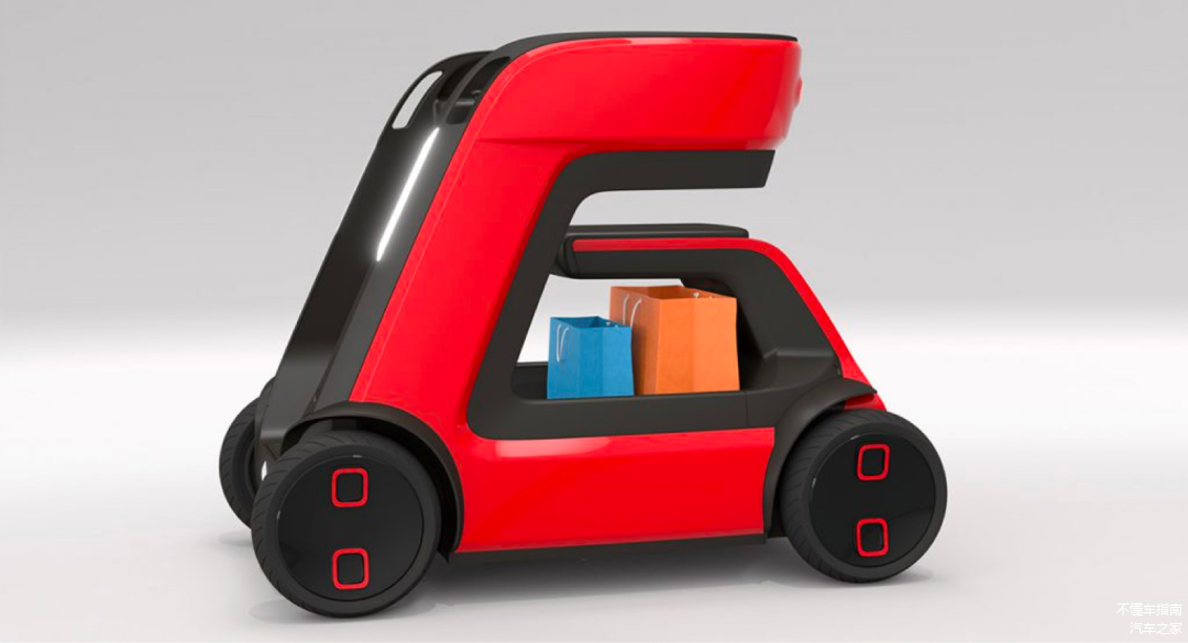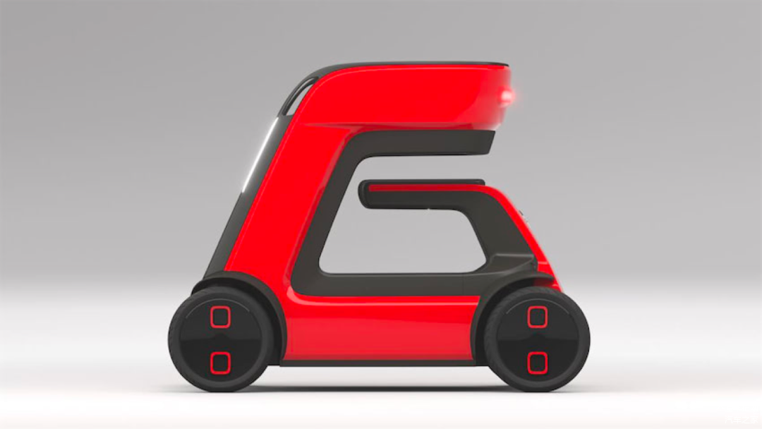 这辆小车的设计时速是6公里/小时,可以在人行道上行驶,是为老年人设计的轻松、有趣、安全的出行代步工具。