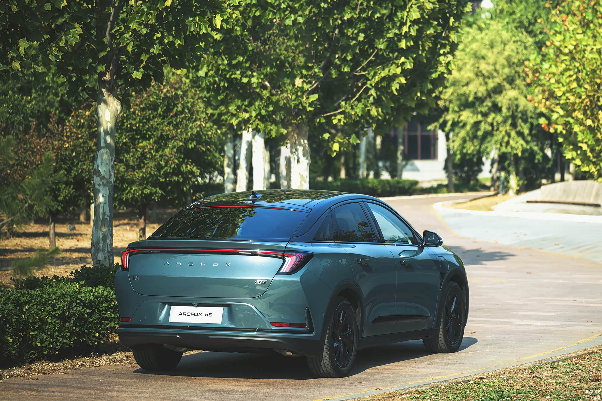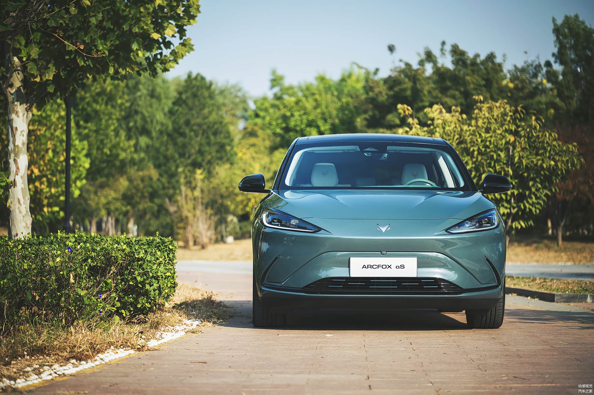 阿尔法S森林版在外观上基本延续了之前的设计,前脸依然以极狐logo为中心,通过凌厉的线条向四周发散,这让它看起来极富动感,同时还进一步强调了前脸的视觉重心,不过这个视觉重心在阿尔法S森林版上得到了升级,变为可发光的logo,也让这台车更具时尚豪华感。